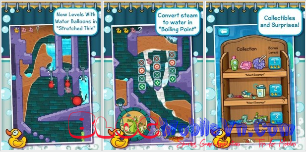 *. - Hơn 140 thử thách cập nhật miễn phí: Niềm vui chỉ mới bắt đầu thôi. Đường ống nước của Swampy đã bị phá vỡ và công việc của bạn là làm sao để nước lại chảy một lần nữa thông qua bốn chương, mỗi chương lại có 20 cấp độ đầy thử thách. Hãy tiếp tục chơi! Cứ một chương mới sẽ lại có thêm những cập nhật mới miễn phí.